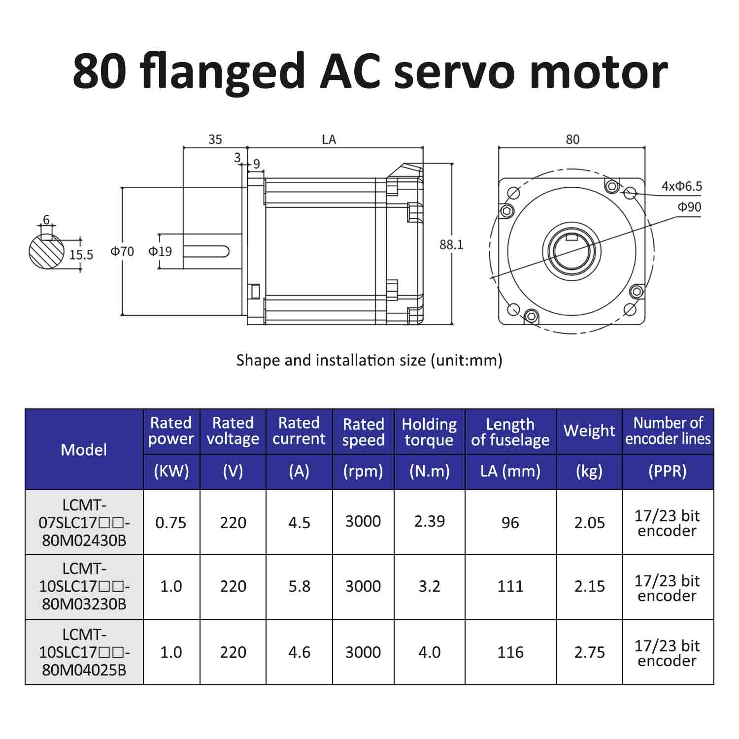 DeLichuan A8 High Precision STO ABZ AC Servo Motor Drivers Kitinkluderar ett komplett servosystem med följande specifikationer:
