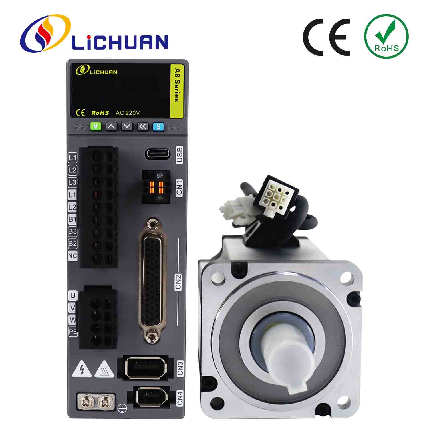 Lichuan AC Servo Motor Drivers Kit A8 Hög noggrannhet STO ABZ 200W 0.637N.m 220V 1.6A 3000RPM IP65