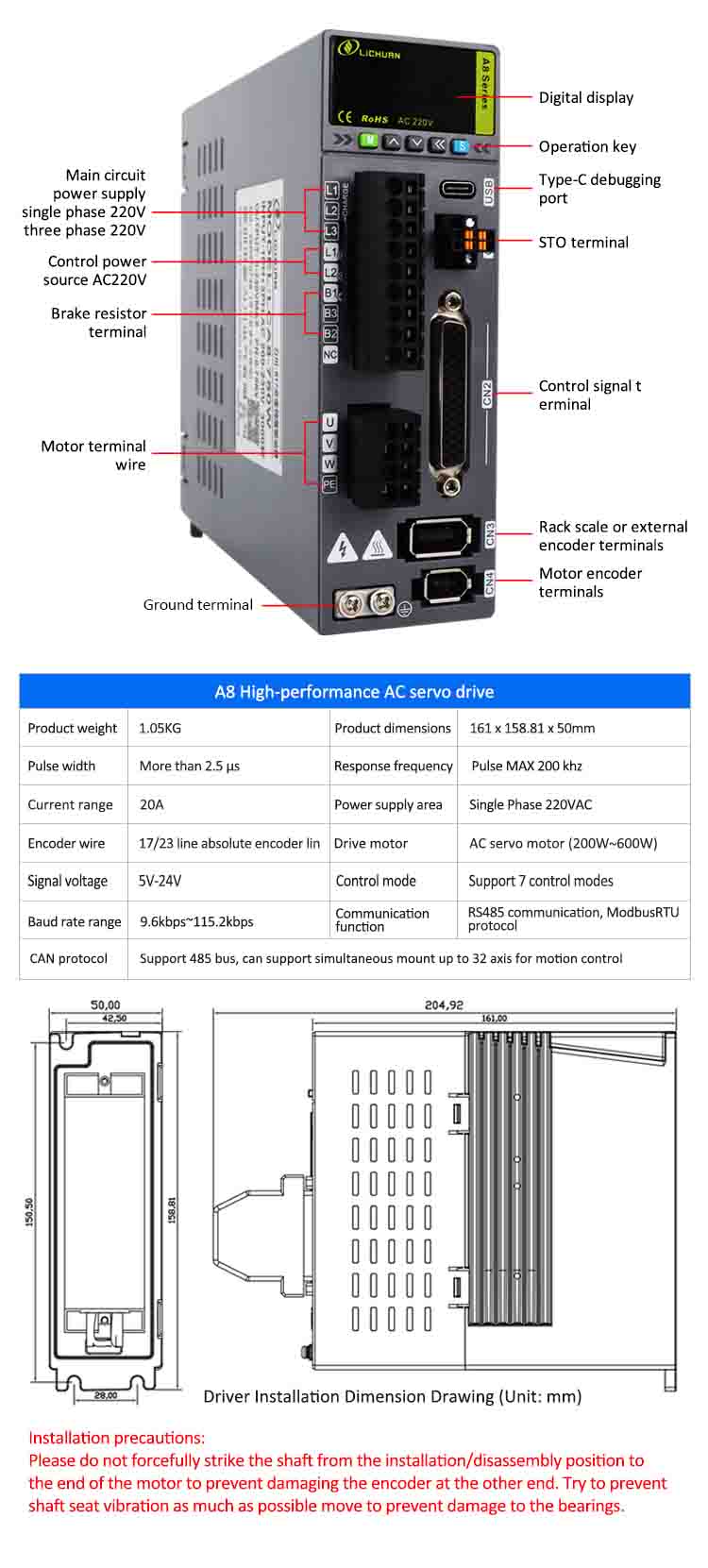 Lichuan A8 High Precision STO ABZ AC Servo Motor Drivers Kit — Fullständig produktöversikt