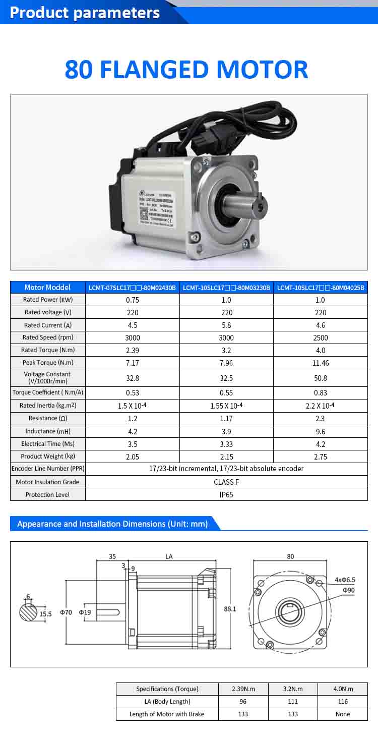 Lichuan AC Servo Motor Drivers Kit A8 Hög noggrannhet STO ABZ 750W 0,75KW 2,39N.m 220V 4,5A 2500/3000RPM IP65